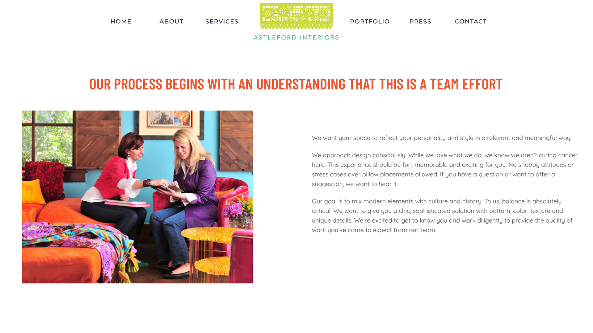 Our goal is to mix modern elements with culture and history. To us, balance is absolutely critical. We want to give you a chic, sophisticated solution with pattern, color, texture and unique details. We’re excited to get to know you and work diligently to provide the quality of work you’ve come to expect from our team.